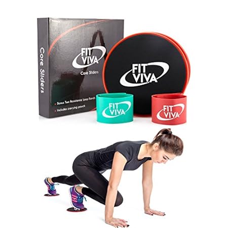 2 Professional Gliding Discs and 2 Resistance Loop Bands Bundle from Fit Viva BONUS Exercise eBook – Lightweight Workout Equipment for Home – Ideal for Intense Abdominal and Core Exercises
