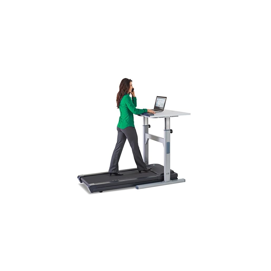 The TR1200-DT5 Treadmill Desk combines our most popular office treadmill with our standing desk, providing everything you wish to have to begin walking at the same time as you work. The newly-designed console is integrated directly within the armrest of the standing desk, providing the entire activity feedback you desire, including readouts for steps, walking time, distance, calories and speed. The dependable 20” by 50” walking surface is equipped with six affect-absorbing compression shocks, supporting users up to 350-pounds. Quiet operation permits you to stay respectful of coworkers at the same time as you walk for miles on a daily basis without impacting office productivity. High-quality components suppress mechanical noise and subdue vibration, keeping your focus on the task at hand. The manual-height standing desk adjusts from 41” to 55”, allowing you in finding proper ergonomic positioning whether short or tall. The usual 38” wide desktop provides a spacious working area at the same time as still leaving enough room for all your office supplies. Backed with a lifetime frame warranty, a three-year motor warranty, two-year parts warranty, and one-year labor warranty.