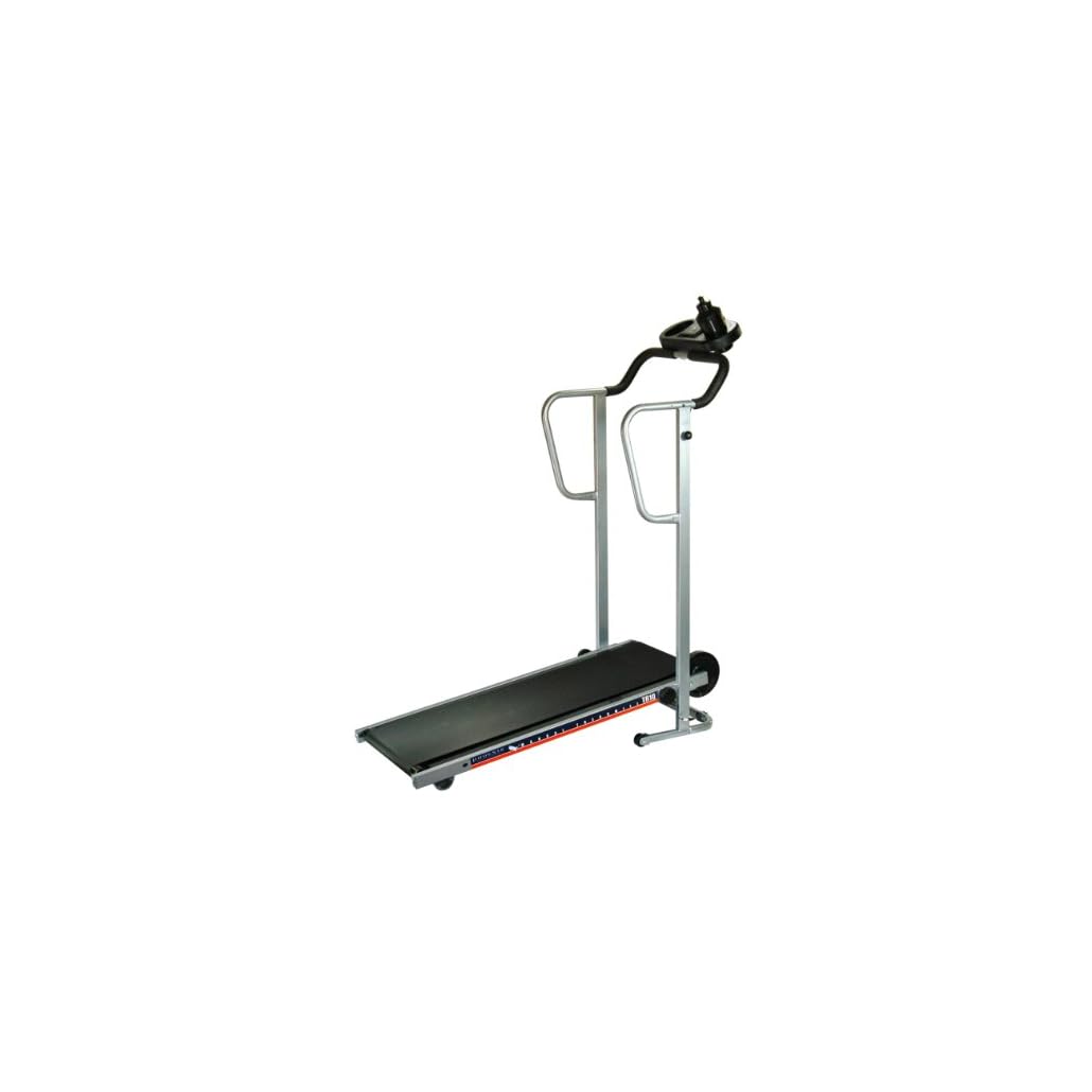 Note: Manual treadmill, it is self-powered and must hold onto the handles and walk with a fluid motion in order to make it work. Belt adjustment has been pre-adjusted; then again, for information on belt adjustment page 13 from the manual can be viewed.
