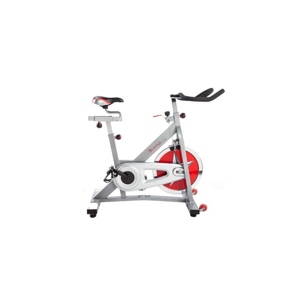 Get fit without leaving the home with the SF-B901 Pro Indoor cycling bike from Sunny Health & Fitness. The SF-B901 is equipped with such features as a 40-pound flywheel, a heavy-duty crank, and a smooth chain drive mechanism. Combined, the features produce invigorating yet quiet workouts, so you won’t wake the kids down the hall while you exercise. The bike also accommodates a wide variety of riders thanks to the fully adjustable seat and handlebars. Other features include a heavy-duty steel frame, an adjustable resistance system, and transport wheels for easy mobility. Designed to support up to 275 pounds, the bike measures 20 by 46.5 by 48.5 inches (W x H x D) and weighs 108 pounds. Note: The left pedal needs to be screwed in counter clockwise